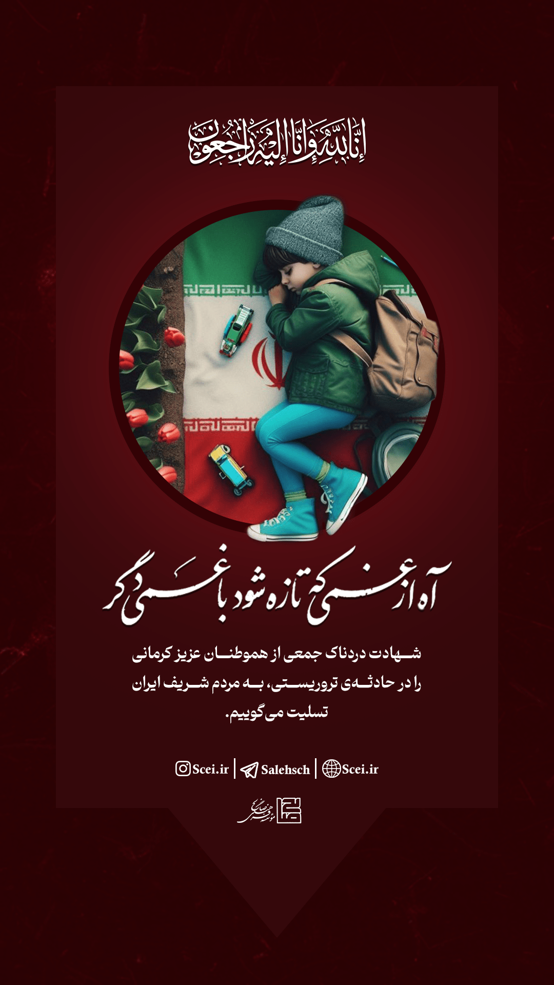 دستهبندی نشدهتازه ها تسلیت به مردم ایران در ۱۴ دی ۱۴۰۲، ۱۱:۵۶ 296 0 شهادت جانسوز جمعی از هموطنان عزیزمان در شهر کرمان را در عملیات تروریستی امروز توسط دشمنان و کوردلان؛ به ملت شریف ایران تسلیت میگوییم. 0 296 به اشتراک گذاری