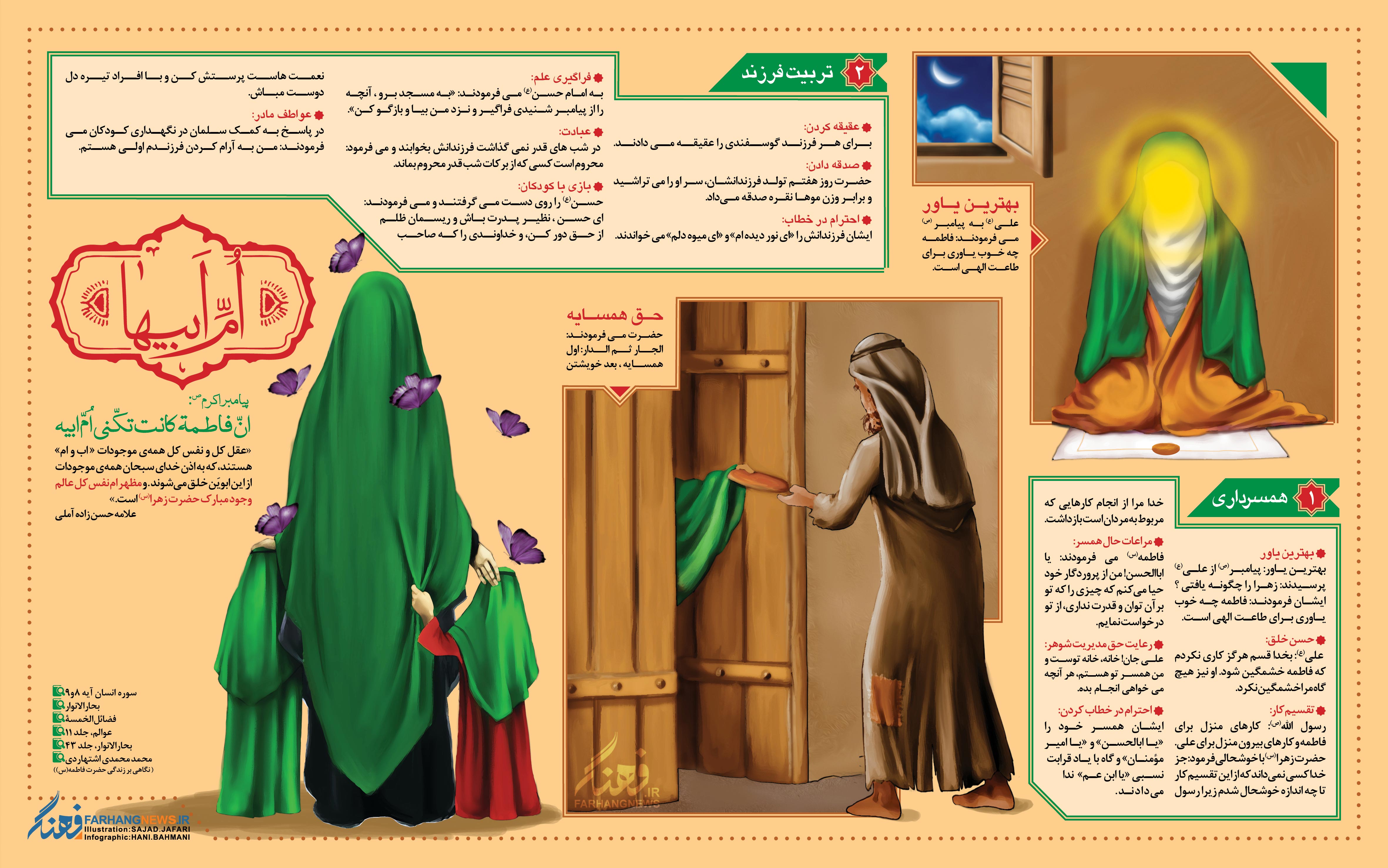 ج: هنر و ادبيات که ام البنين از «دايي » خويش لبيد شاعر به ارث برده بود و فرزند عزيزش عباس(عليه السلام) از مادر اديبه خود.
