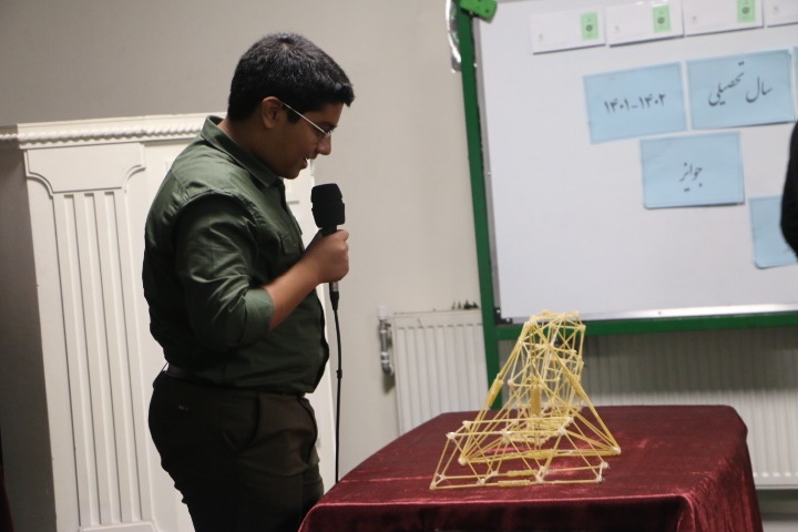 کلاس دیگر ساخت پل ماکارونی بود که آقای مدرسی به عنوان نماینده کلاس در جلسه اختتامیه حاضر و از اهدافی که در این کلاس بود پرداخت و تجربیات خودش را در این کلاس به بقیه بچهها به اشتراک گذاشت. جلسه اختتامیه با پرسش و پاسخ نیز به همراه بود که یکی از حضار رو به جناب آقای مدرسی گفت؛ هدف از سازه ماکارونی چیست؟