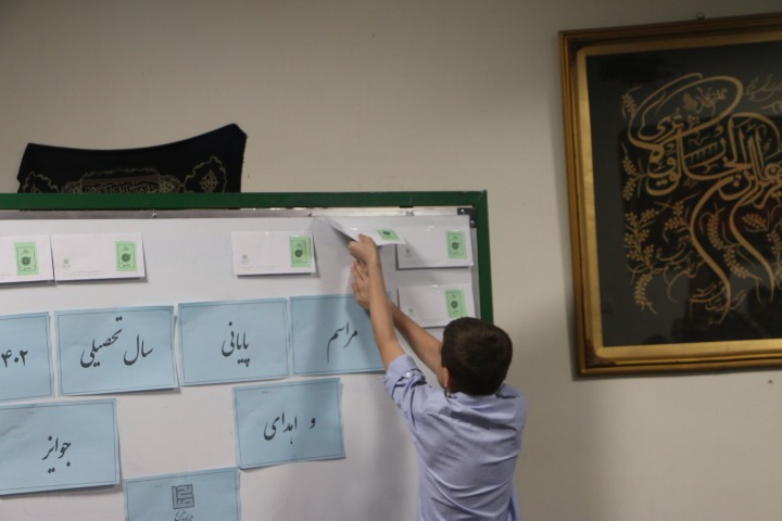 اولا جوایز به انتخاب خود دانشآموز هست و ثانیا بر اساس کارتهای امتیاز که در طول سال کسب کردند، الویت بندی شده و جایزه خود را انتخاب میکند.